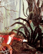 In Mirkwood lives spiders big enough to scare even the bravest. They are the children of Shelob. These spiders live in a colony and cooperate when facing both enemies and prey. The picture shows Bilbo fighting to save himself and the dwarves in The Hobbit.
